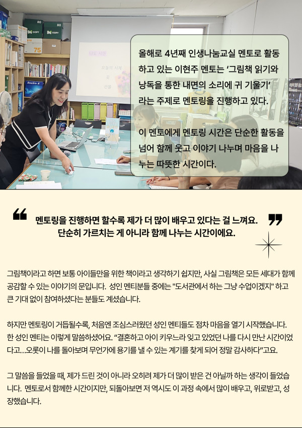 [멘토 인터뷰] 인생나눔교실 이현주 멘토 > 인생나눔교실