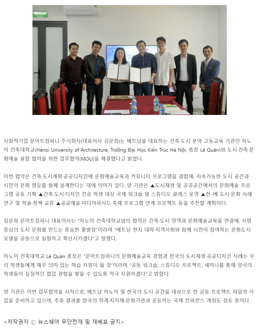 도시·건축·문화예술 융합 협력을 위한 업무협약(MOU)을 체결했습니다.