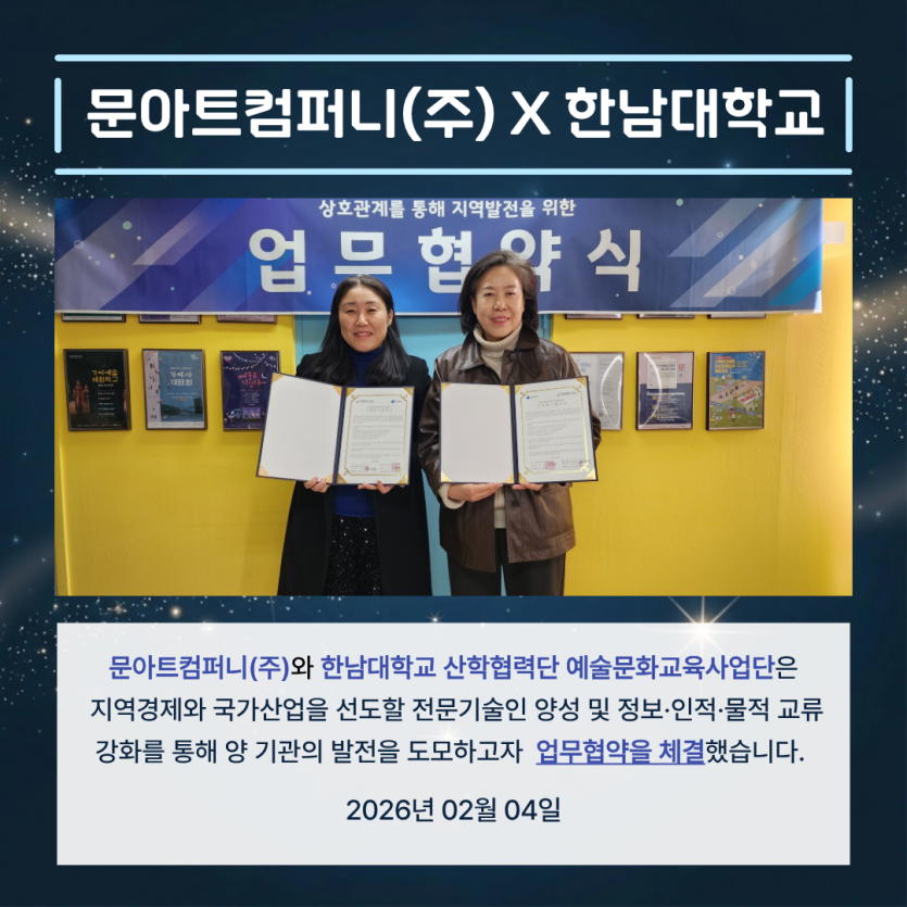 2026년 2월 4일 문아트컴퍼니(주)와 한남대학교 산학협력단 예술문화교육사업단은