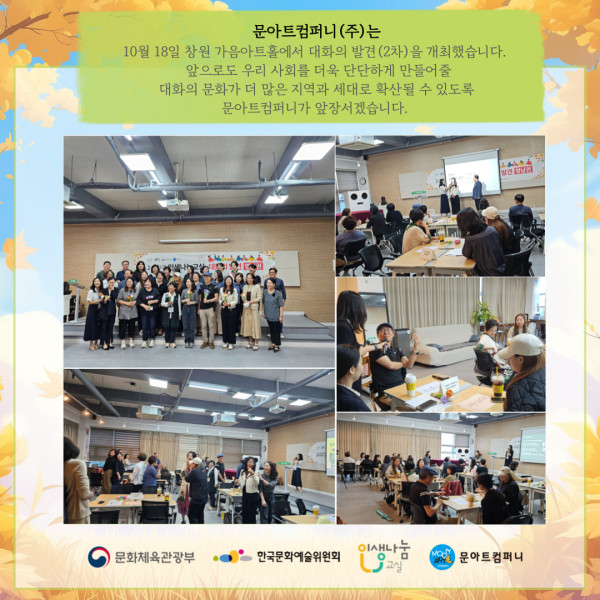 10월 18일 창원 가음아트홀에서 대화의 발견 2차가 성황리에 종료되었습니다.