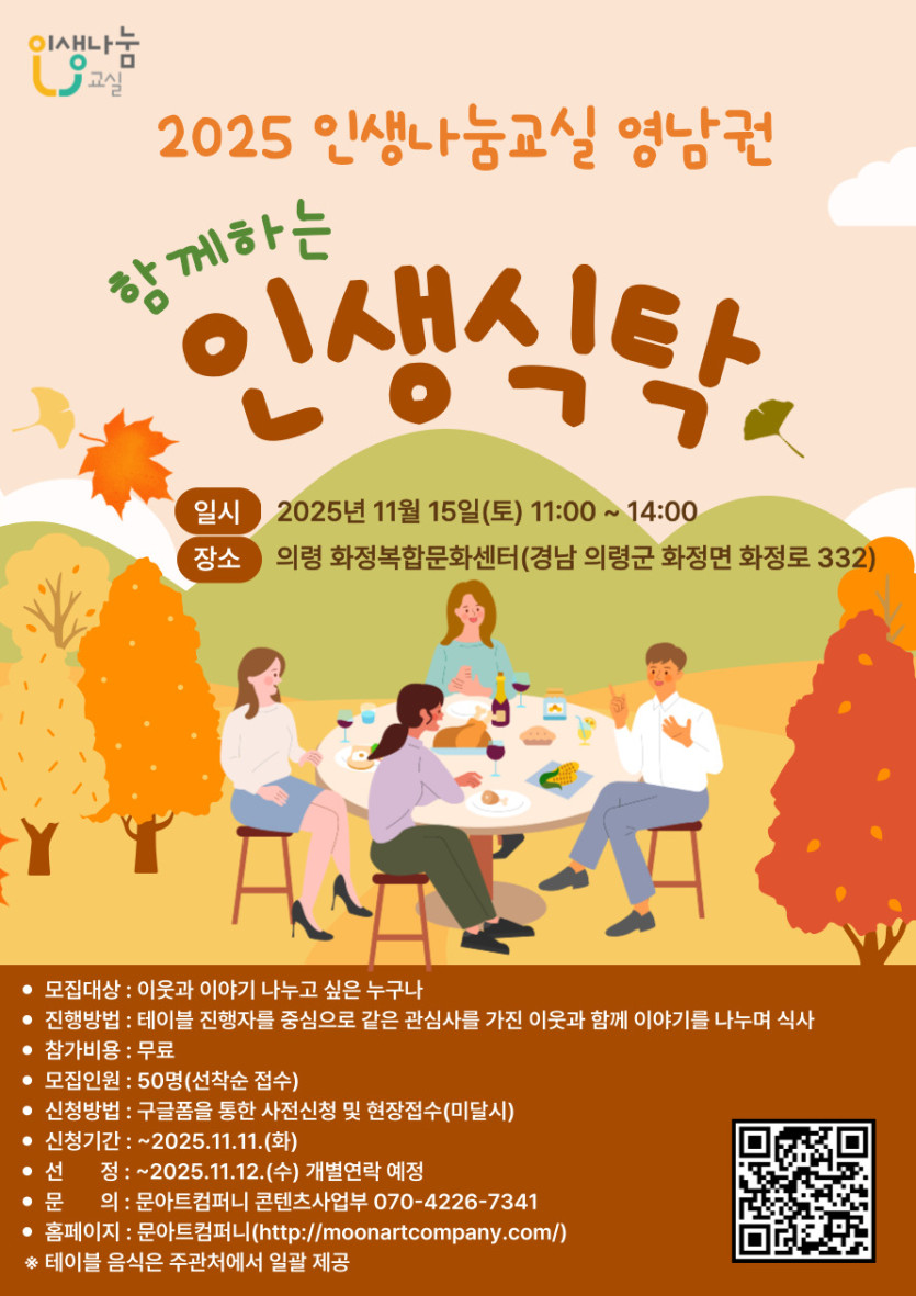 안녕하세요. 인생나눔교실 영남권 운영기관 문아트컴퍼니(주)입니다.