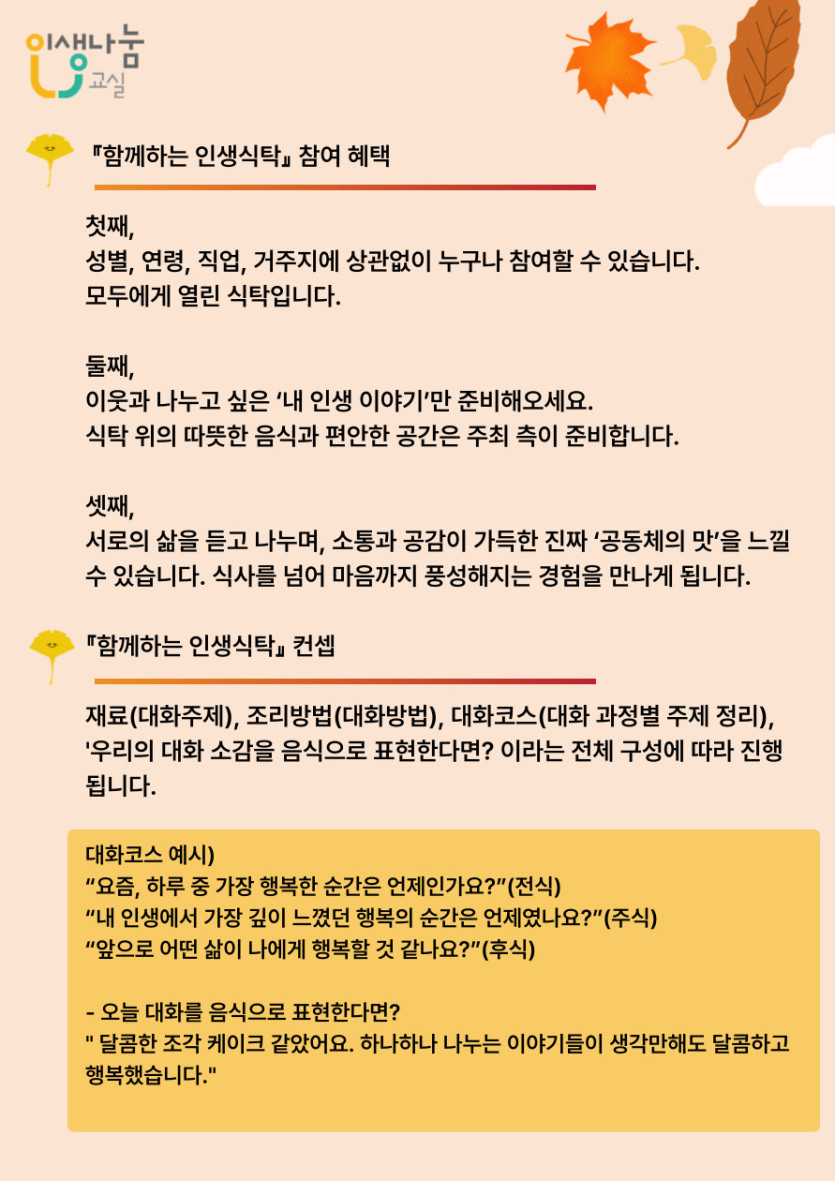 인생나눔교실 기획사업 '함께하는 인생식탁'에 여러분들을 초대합니다~^^
