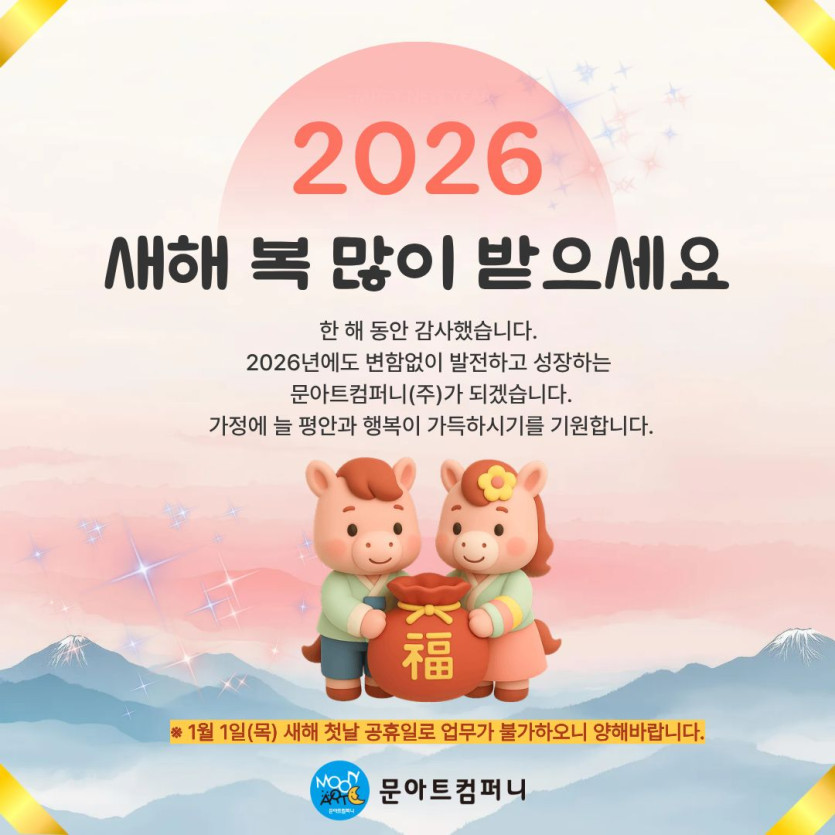 다가오는 2026년도 변함없이 발전하고 성장하는 문아트컴퍼니(주)가 되겠습니다.^^