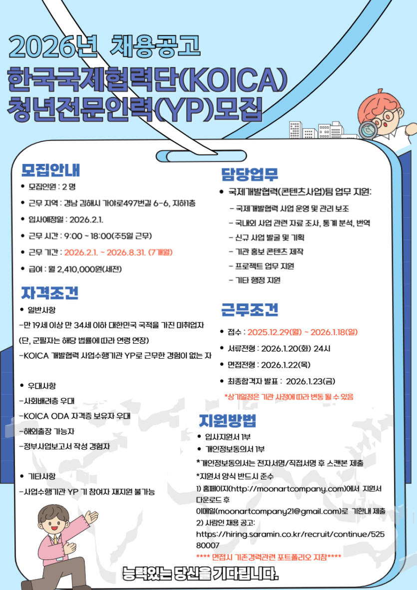 ***채용은 2025년12월29(월)일부터 시작되며 모집기간 이전에 접수된 이력서의 경우, 기간 외 지원이라 불가***