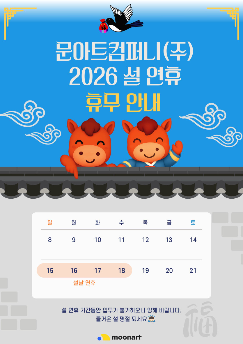새해 복 많이 받으시고, 다가오는 설 명절에도 건강과 편안이 가득하시길 바랍니다.